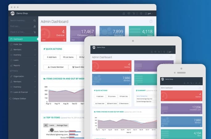 - Locations: Multiple location support give you the ability to separate your inventory by location (or group) — including the ability to restrict regular admins to just modify inventory or complete loans