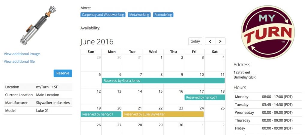 This update includes the ability to view due dates and upcoming reservations for individual items in a calendar format. By default, admins can see who has an item reserved on the calendar and regular users can not.