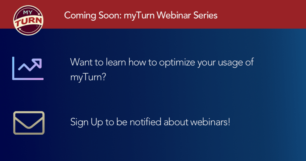 myTurn is kicking off a webinar series in early May to introduce new features and provide tips on best practices using the platform. These webinars will run through basic and advanced topic and allow time for Q&A.