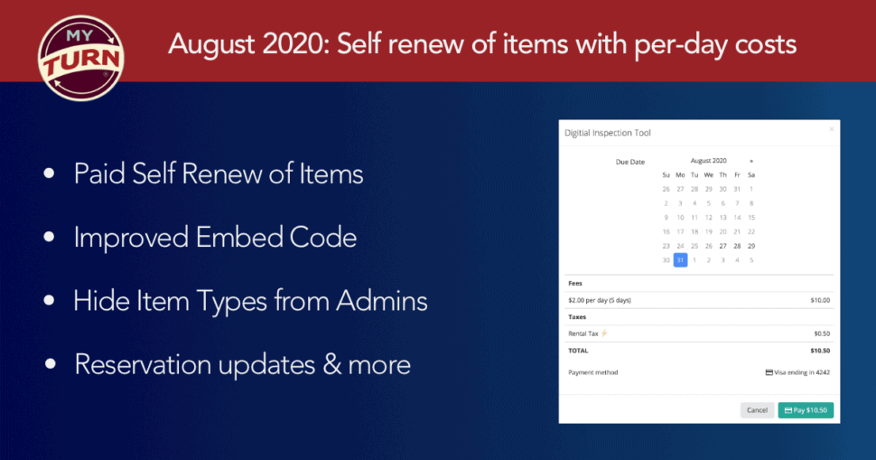 August 2020 Updates: Paid Self Renew of Items, Improved Embed Code, Item Type Hiding